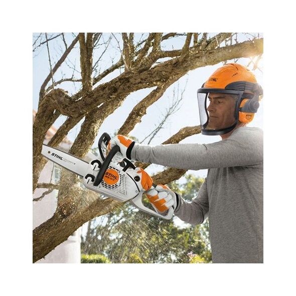 STIHL MS 151 C-E με PM3 αλυσίδα: Το πιο ελαφρύ μοντέλο στην κατηγορία farm & ranch, με άνετη εκκίνηση Easy2Start™, έξυπνο σύστημα λίπανσης Ematic™ και ασφάλεια QuickStop® — ιδανικό για επαγγελματική χρήση χωρίς κόπο.