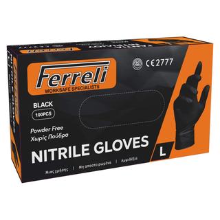 Γάντια νιτριλίου μαύρα σε συσκευασία 100 τεμαχίων, με ανθεκτικό υλικό για προστασία σε βιομηχανικές και εργασιακές χρήσεις, προσφέρουν άνεση και ασφάλεια.