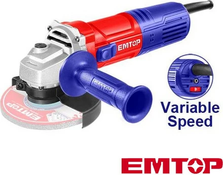 Ο γωνιακός τροχός Emtop EAGRS09051 διαθέτει ισχύ 900W και ρυθμιζόμενη ταχύτητα, με διάμετρο δίσκου 125mm και σπείρωμα άξονα M14. είναι ιδανικός για κοπή και λείανση μετάλλων, ξύλου και πέτρας