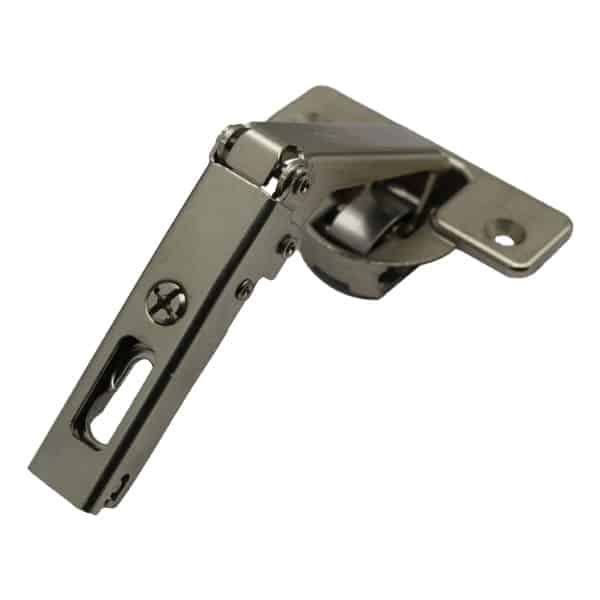 Γωνιακός μεντεσές νικελέ με άνοιγμα 110°, ρυθμιζόμενος σε τρεις διαστάσεις για τέλεια εφαρμογή. Κατάλληλος για ντουλάπια και έπιπλα, συνδυάζει ανθεκτικότητα, λειτουργικότητα και αθόρυβο κλείσιμο για μεγαλύτερη άνεση.