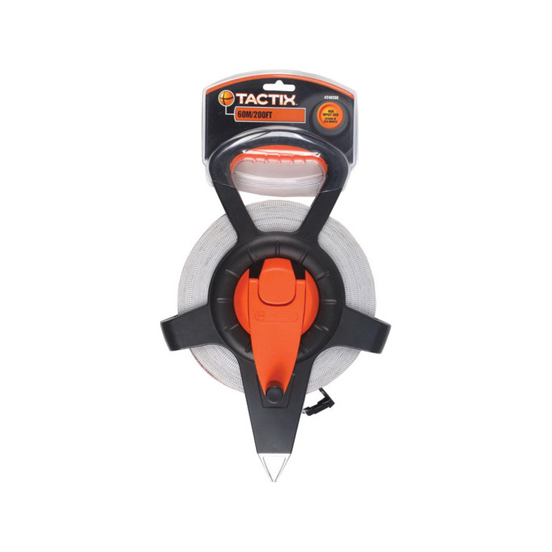 Μετροταινία ανοιχτού τύπου Fiberglass Tactix 60m x 13mm, με ανθεκτική ταινία από υαλονήματα, ανοικτό περίβλημα για εύκολο καθαρισμό και εργονομική λαβή. Ιδανική για χρήση σε εργοτάξια και εξωτερικούς χώρους.