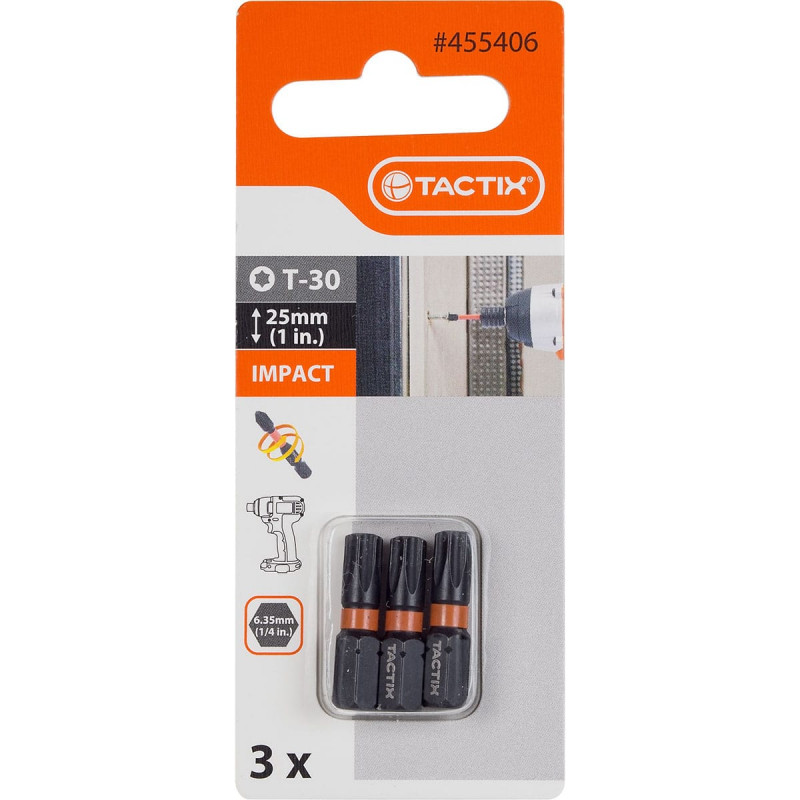 Σετ 3 μύτες TORX T30 x 25mm TACTIX 455406 με τεχνολογία Impact Torsion για μέγιστη αντοχή σε υψηλές ροπές. Ιδανικές για χρήση με παλμικά κατσαβίδια σε απαιτητικές εργασίες.