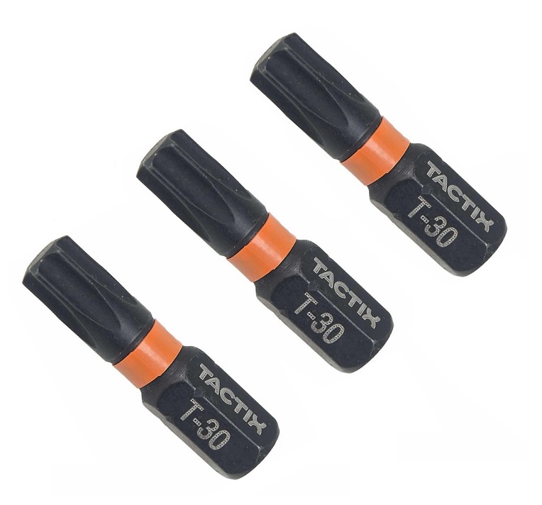 Οι μύτες Torx Impact Tactix T30 25mm σε σετ 3 τεμαχίων προσφέρουν υψηλή αντοχή σε κρούσεις και ακριβή εφαρμογή σε βίδες Torx, ιδανικές για δραπανοκατσάβιδα και απαιτητικές εργασίες.