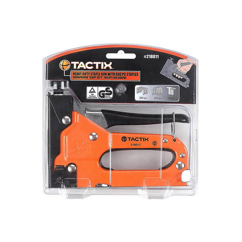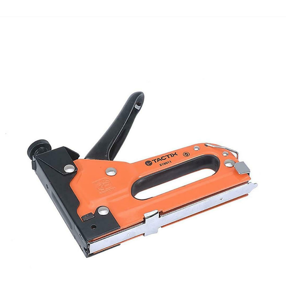 Ισχυρό καρφωτικό TACTIX με ρυθμιζόμενη βίδα για ακρίβεια. Υποστηρίζει σύρματα 4–14mm, ιδανικό για επαγγελματικές ή οικιακές εφαρμογές σε διάφορα υλικά.