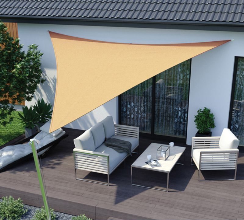 Το μπεζ σκίαστρο 3.6×3.6×3.6 μέτρων με βάρος 185 γραμμάρια προσφέρει αποτελεσματική προστασία από τον ήλιο, δημιουργώντας έναν δροσερό και άνετο χώρο στον κήπο ή την βεράντα.