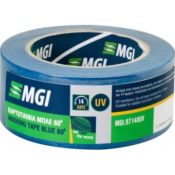 Χαρτοταινία μασκαρίσματος MGI μπλε UV, με εύκολο κόψιμο και αντοχή έως 60°C και στην υπεριώδη ακτινοβολία. Ιδανική για καθαρές γραμμές βαφής σε εσωτερικούς και εξωτερικούς χώρους.