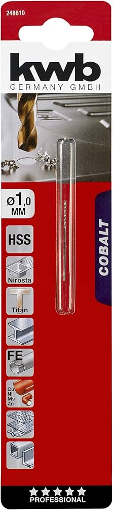 Τρυπάνι κοβαλτίου KWB HSS 1,0 mm για ακριβείς διατρήσεις σε ανοξείδωτο χάλυβα και μέταλλα. Προσφέρει υψηλή αντοχή στη θερμότητα και μεγάλη διάρκεια ζωής για επαγγελματικές εφαρμογές.