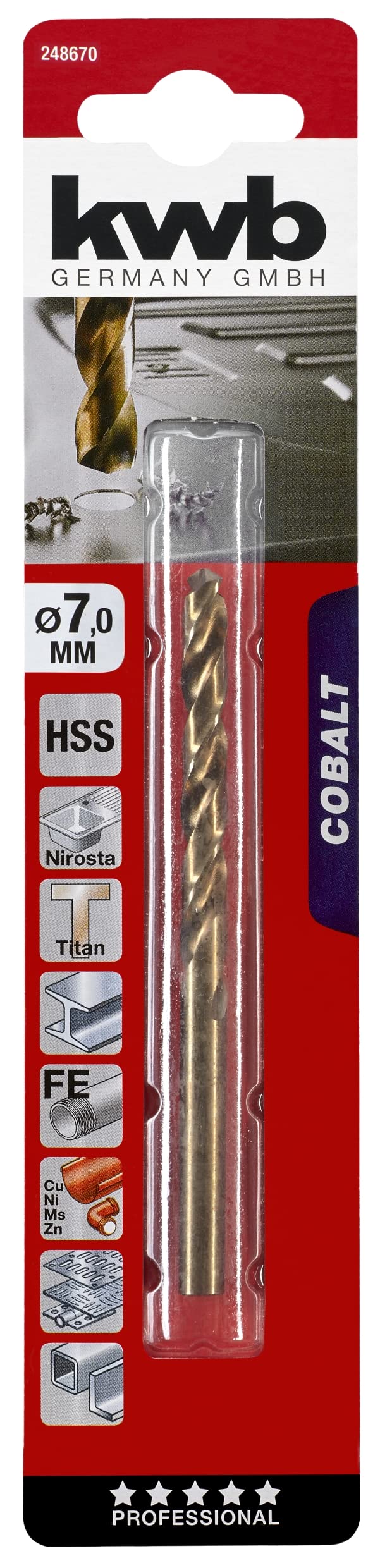 Τρυπάνι κοβαλτίου KWB HSS 7,0 mm, ιδανικό για ανοξείδωτο χάλυβα και σκληρά μέταλλα. Εξασφαλίζει καθαρό τρύπημα, υψηλή ανθεκτικότητα και σταθερή απόδοση για επαγγελματικές εφαρμογές.