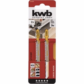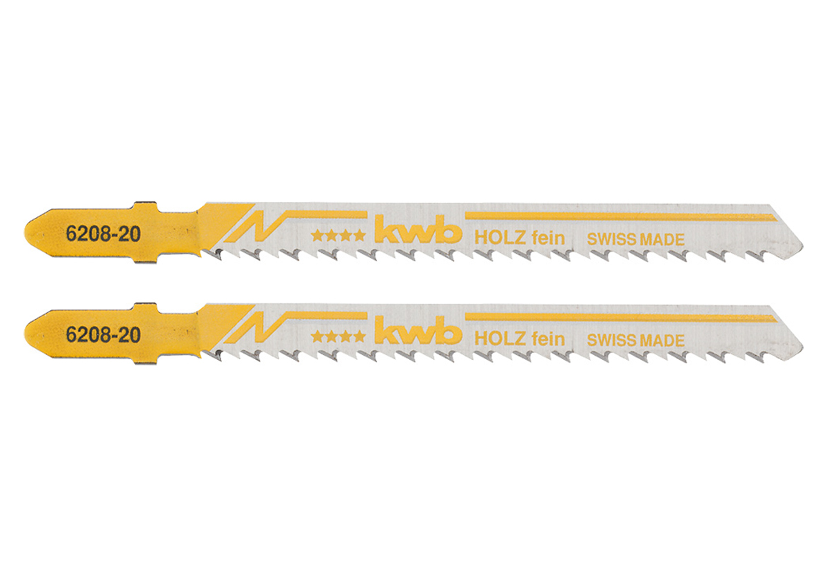 Σετ 2 πριονόλαμες σέγας KWB για λεπτομέρειες σε ξύλο, ιδανικές για καθαρές και ακριβείς κοπές σε καμπύλες και μικρά σχήματα.