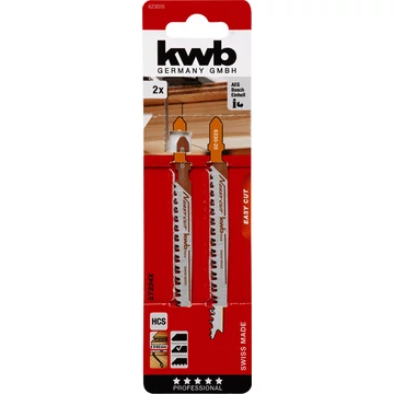Σετ 2 λάμες σέγας KWB Easy Cut για ξύλο, ιδανικές για γρήγορη και καθαρή κοπή με υψηλή ακρίβεια, κατάλληλες για μαλακό και σκληρό ξύλο.