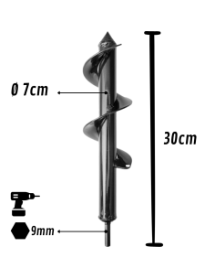 Τριβέλα δραπάνου KWB 7×30 cm από ανθεκτικό χάλυβα, ιδανική για τοποθέτηση δενδρυλλίων, ομπρελών ή βολβών στον κήπο. Προσφέρει σταθερή, αποτελεσματική διάτρηση στο χώμα.