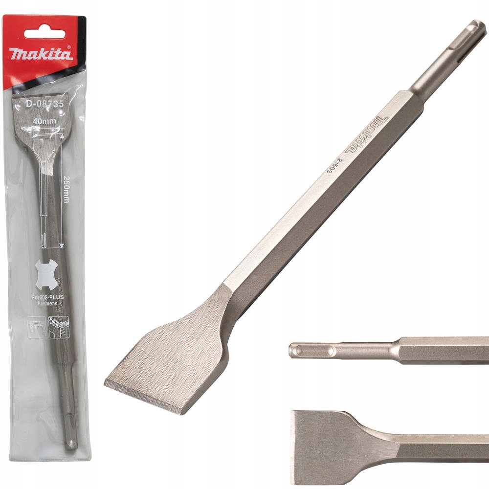 Πλατυκαλέμι Makita SDS-PLUS 40x200mm D-08735 για εργασίες κατεδάφισης σε σκυρόδεμα και τοιχοποιία. Ανθεκτική κατασκευή για αποτελεσματικό καθαρισμό και σμίλευση επιφανειών.