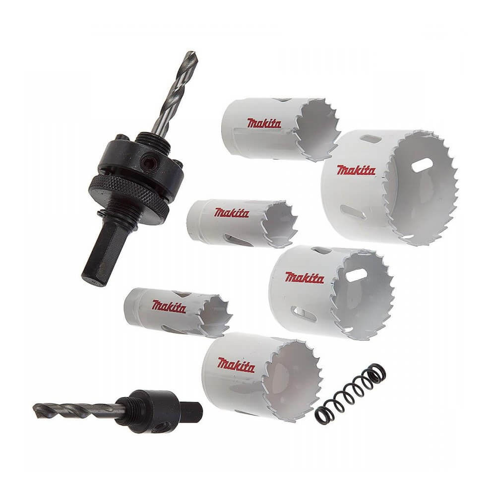 Σετ κορονών Makita D-47117 διμεταλλικής κατασκευής για υδραυλικές εφαρμογές. Περιλαμβάνει 6 ποτηροτρύπανα και εξαρτήματα σε πρακτική κασετίνα. Ιδανικό για μέταλλο, ξύλο και πλαστικό.
