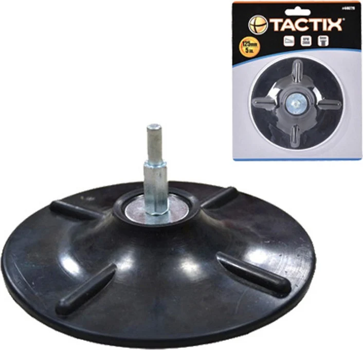 Ελαστικός δίσκος Tactix No125 mm με αξονάκι, ιδανικός για φινίρισμα και στίλβωση μετάλλων και πλαστικών, προσφέρει ευκαμψία, σταθερό έλεγχο και καθαρό αποτέλεσμα λείανσης.