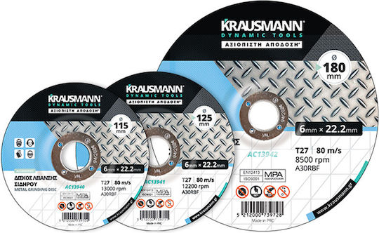 Δίσκοι λείανσης σιδήρου Krausmann Accessories 180x6x22,2 mm για βαριά λείανση μετάλλων, προσφέρουν υψηλή αντοχή, σταθερή απόδοση και καθαρό φινίρισμα.