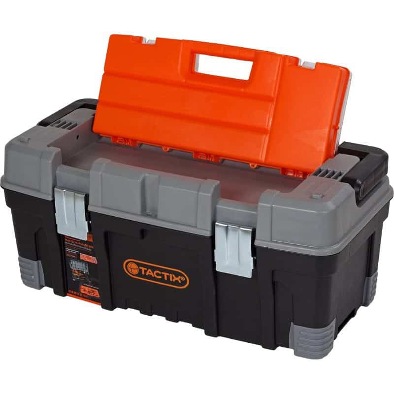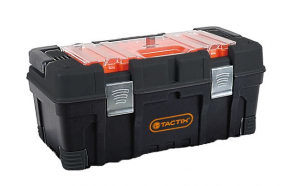 Η εργαλειοθήκη TACTIX βαρέως τύπου είναι σχεδόν άθραυστη και εγγυάται μέγιστη ασφάλεια για εργαλεία, αναλώσιμα και εξαρτήματα. Διαθέτει αποσπώμενη ταμπακιέρα με διαφανές καπάκι, εσωτερικό αποσπώμενο ράφι και μεγάλο κεντρικό χώρο για ακόμα ογκώδη εργαλεία.