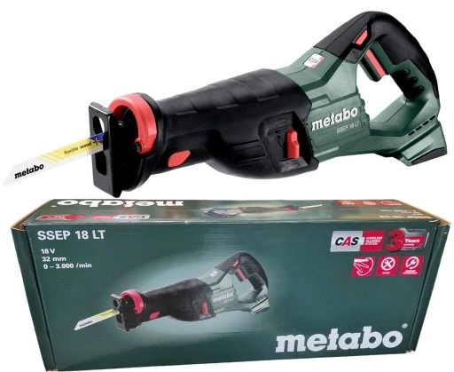 Metabo σπαθοσέγα 18V SSEP 18 LT με γρήγορη αλλαγή λάμας χωρίς εργαλεία, ρυθμιζόμενο οδηγό βάθους και LED φωτισμό, ιδανική για ξύλο και μέταλλο.