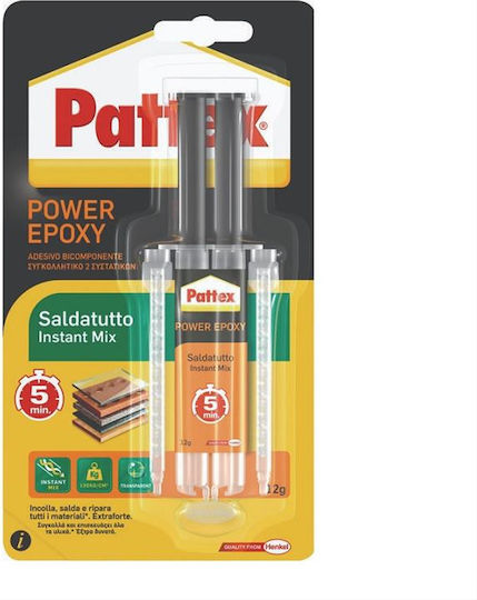 Η εποξική κόλλα Saldatuto Instant Mix 12gr σε σύριγγα προσφέρει εξαιρετικά ισχυρή και γρήγορη συγκόλληση. Αναμιγνύεται αυτόματα, κολλάει μέταλλα, κεραμικά, ξύλο και πολλά υλικά, γεμίζοντας κενά, για ανθεκτικές και μόνιμες επισκευές.