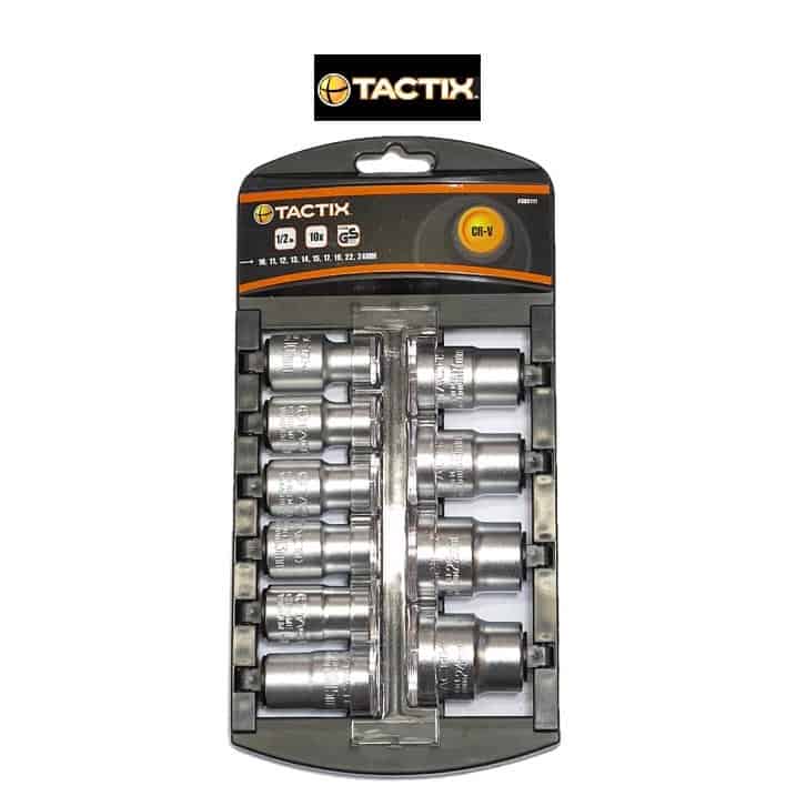 Σετ καρυδάκια Tactix 1/2″ CR-V 10–24mm σε βάση, ιδανικό για συνεργεία και DIY εργασίες. Κατασκευή από χρωμιοβανάνιο για αντοχή και ακρίβεια στη χρήση.