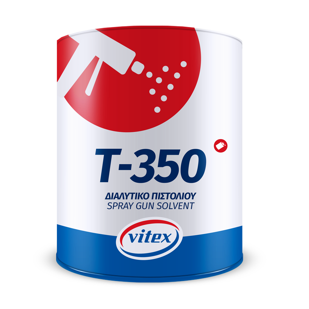 Vitex Διαλυτικό Πιστολιού T-350: Εξειδικευμένο διαλυτικό για χρήση σε πιστόλια βαφής. Διασφαλίζει ομοιόμορφη ροή και άριστη εφαρμογή χρωμάτων διαλύτου, βελτιώνοντας την ποιότητα του τελικού αποτελέσματος.