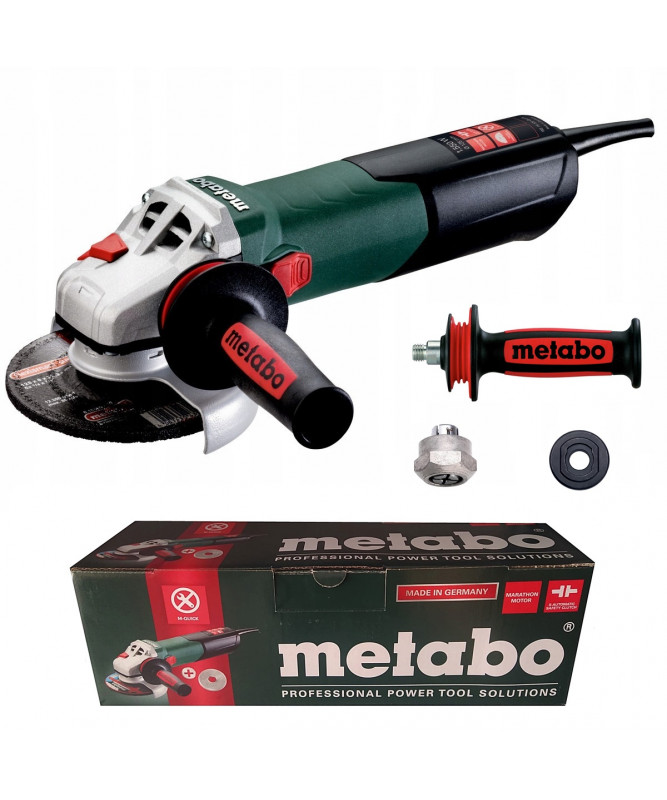 Γωνιακός τροχός Metabo WEV 15-125 Quick 1550W με δίσκο 125mm, σύστημα Vario-Tacho-Constamatic για σταθερές στροφές υπό φορτίο και γρήγορη αλλαγή δίσκου χωρίς εργαλεία. Ιδανικός για απαιτητικές εφαρμογές.