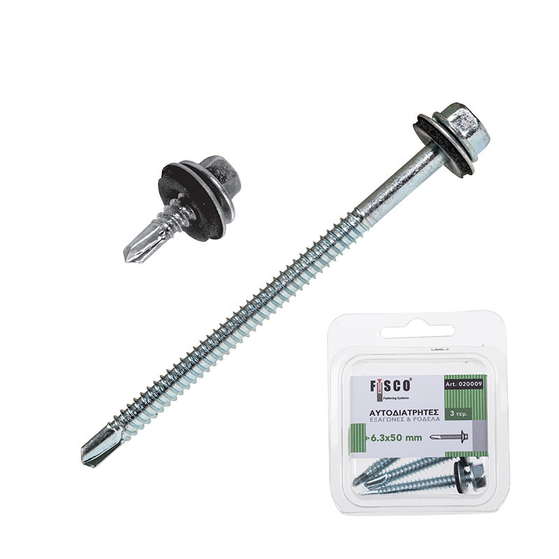 Αυτοδιατρητές Εξάγων + Ροδέλα FSCO 6.3×25 Συσκ. 5 τεμ. BLISTER