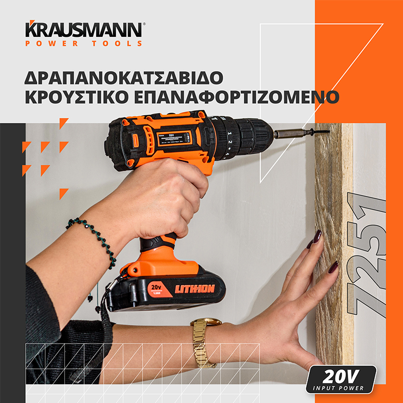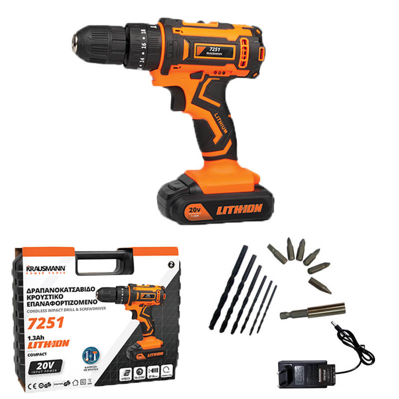 Το δραπανοκατσάβιδο Krausmann 7251 με 20 V τάση και μέγιστη ροπή 35 Nm προσφέρει αποτελεσματικό βίδωμα και διάτρηση σε ξύλο, μέταλλο και πλαστικό. Διαθέτει 2 ταχύτητες, ρύθμιση και μεταβλητή ταχύτητα για απόλυτο έλεγχο, ενώ το ενσωματωμένο φως διευκολύνει τη χρήση σε σκοτεινούς χώρους.