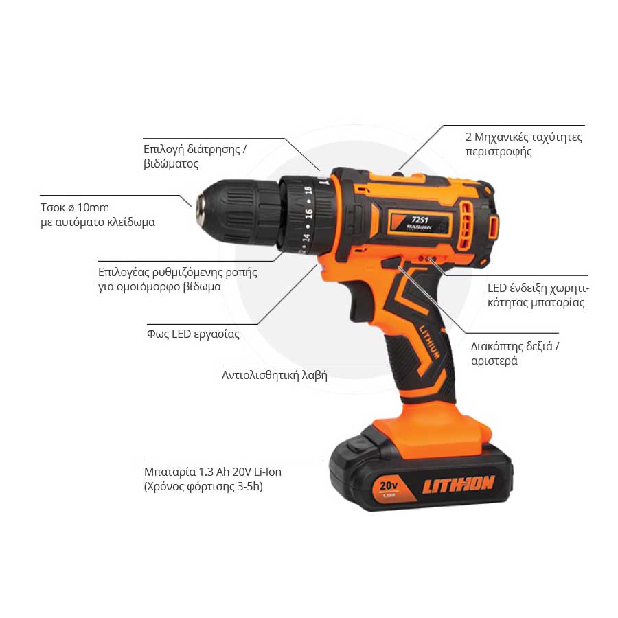• Μέγιστη διάμετρος τσοκ: 10 mm