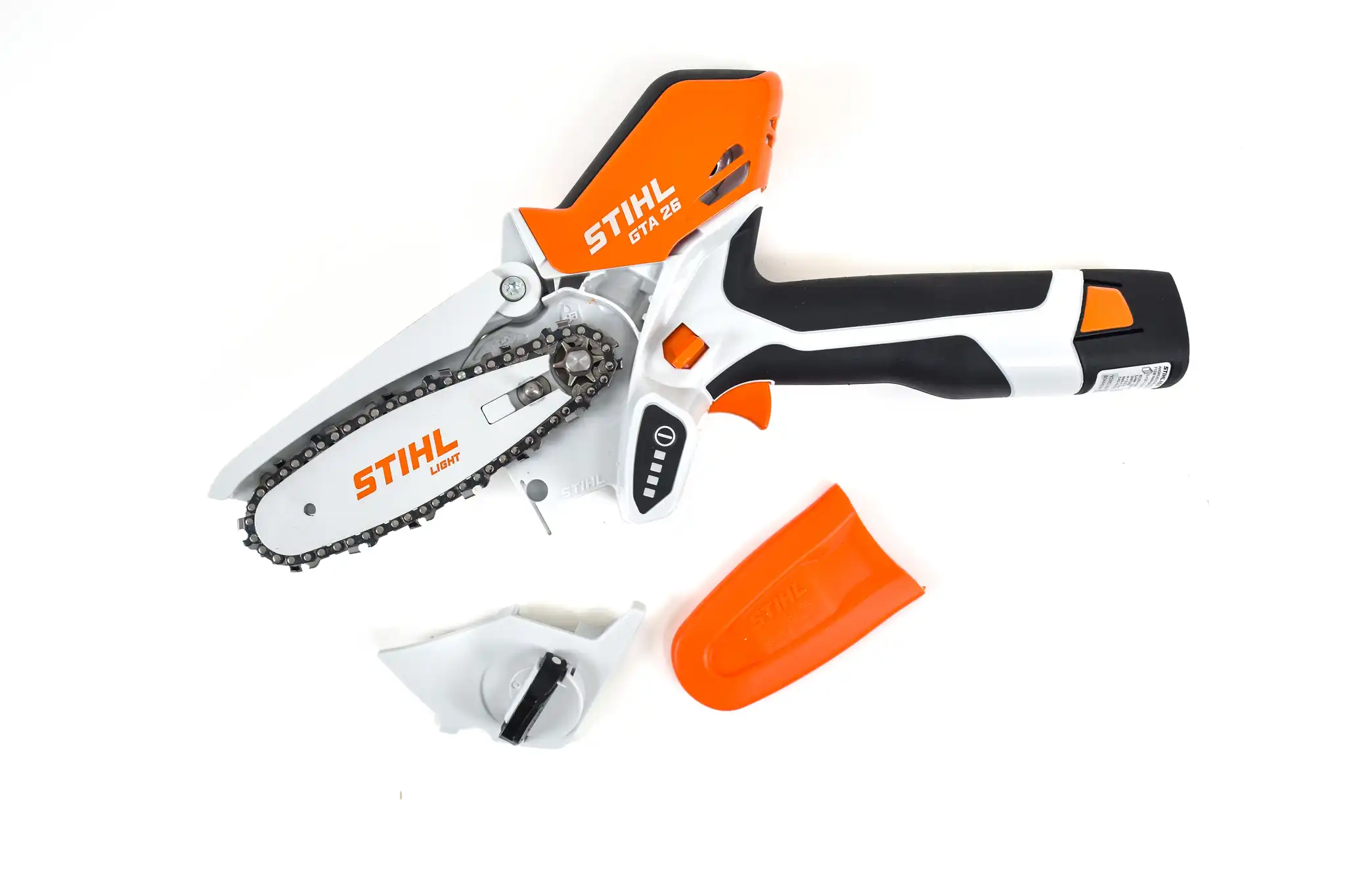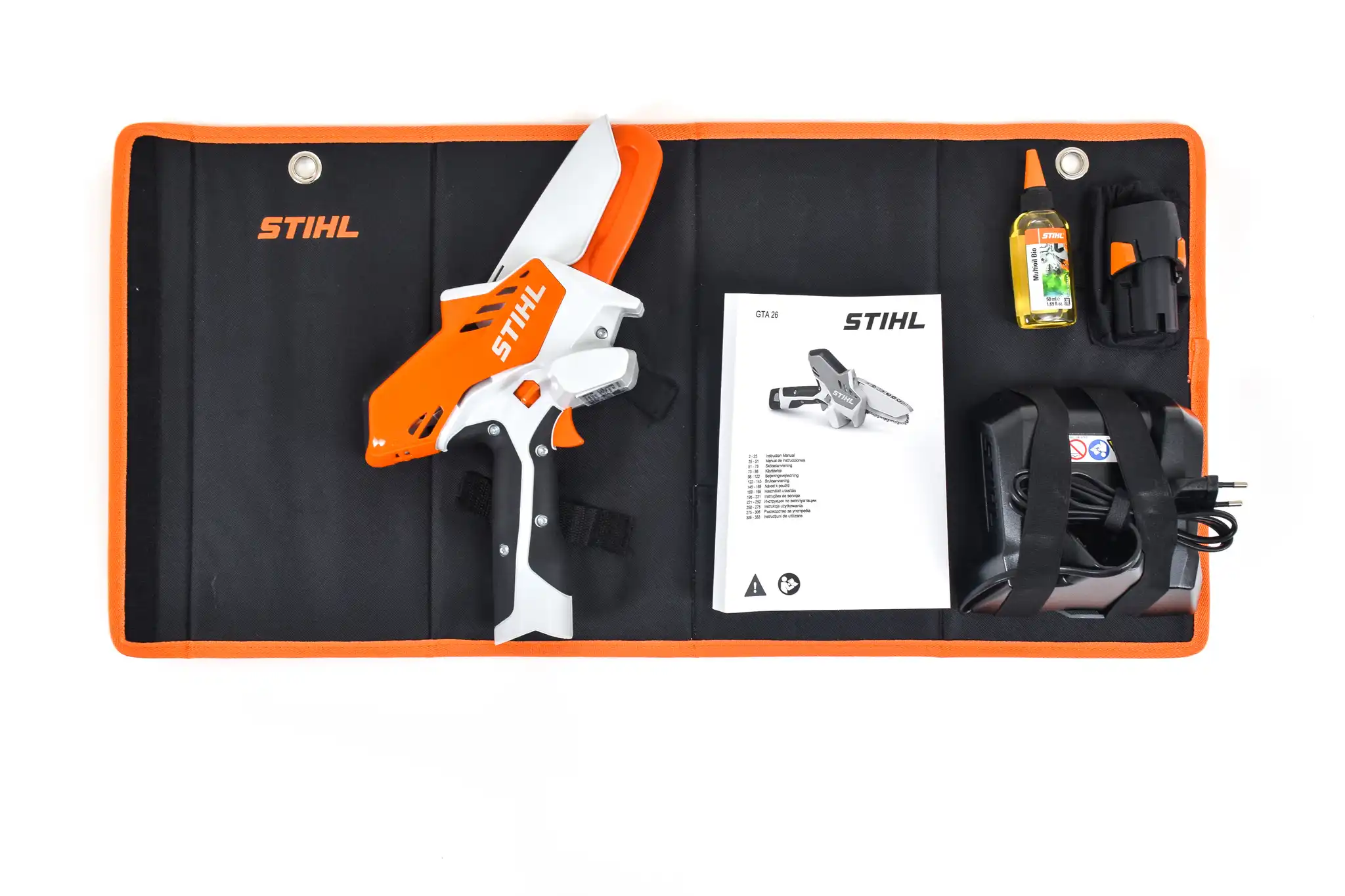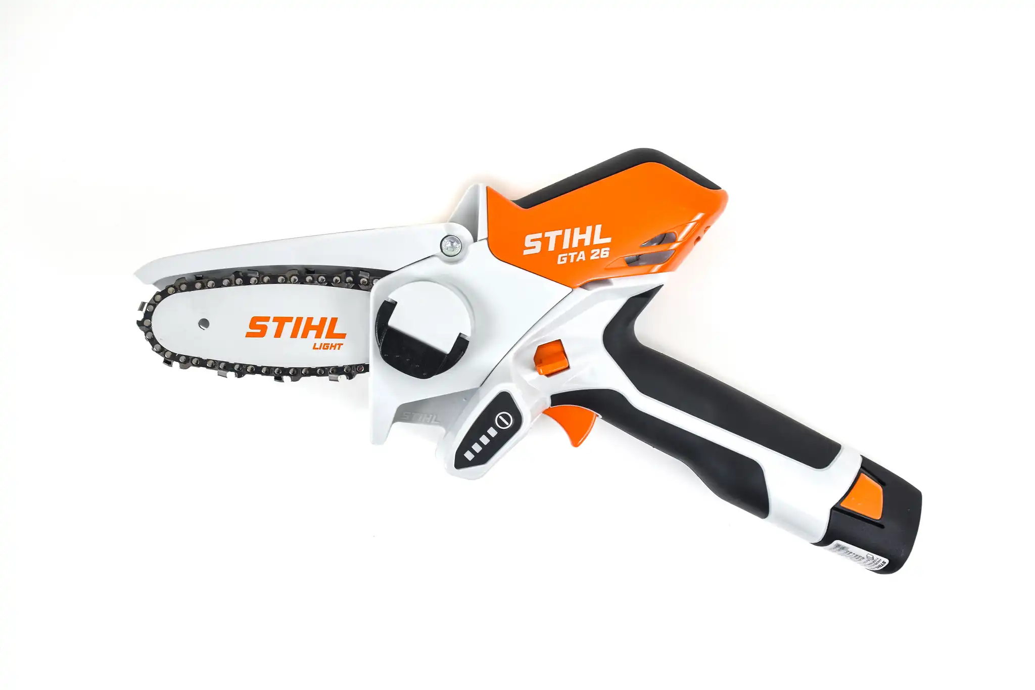Το STIHL GTA 26 είναι το απόλυτο επαναφορτιζόμενο αλυσοπρίονο χειρός για ελαφριές κοπές, κλάδεμα δέντρων και ξυλουργικές εφαρμογές. Με εργονομικό σχεδιασμό, βάρος μόλις 1,1 kg χωρίς μπαταρία και λάμα 10 cm, προσφέρει άνεση και ευκολία στη χρήση. Το σετ περιλαμβάνει μπαταρία AS2 και φορτιστή AL1.