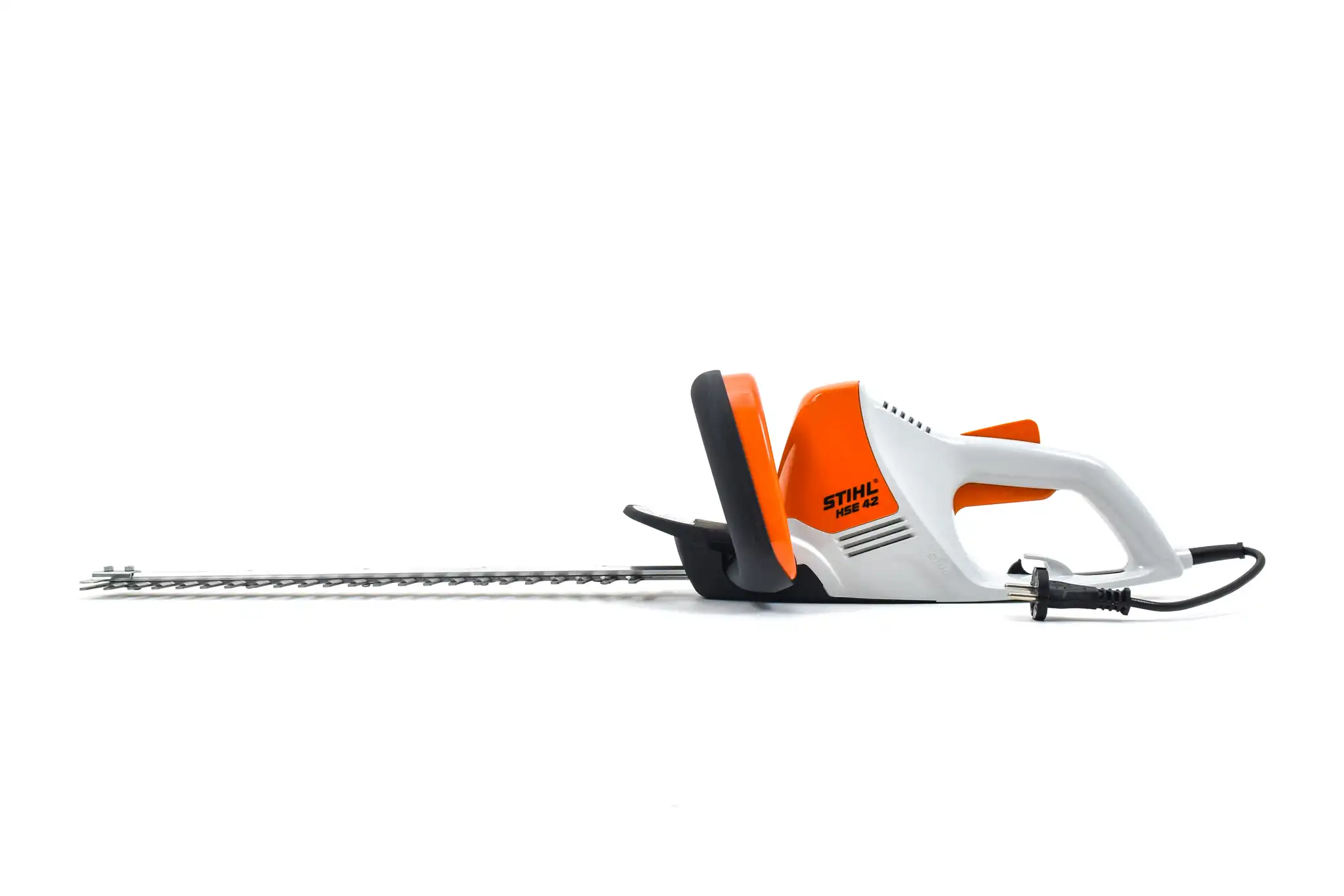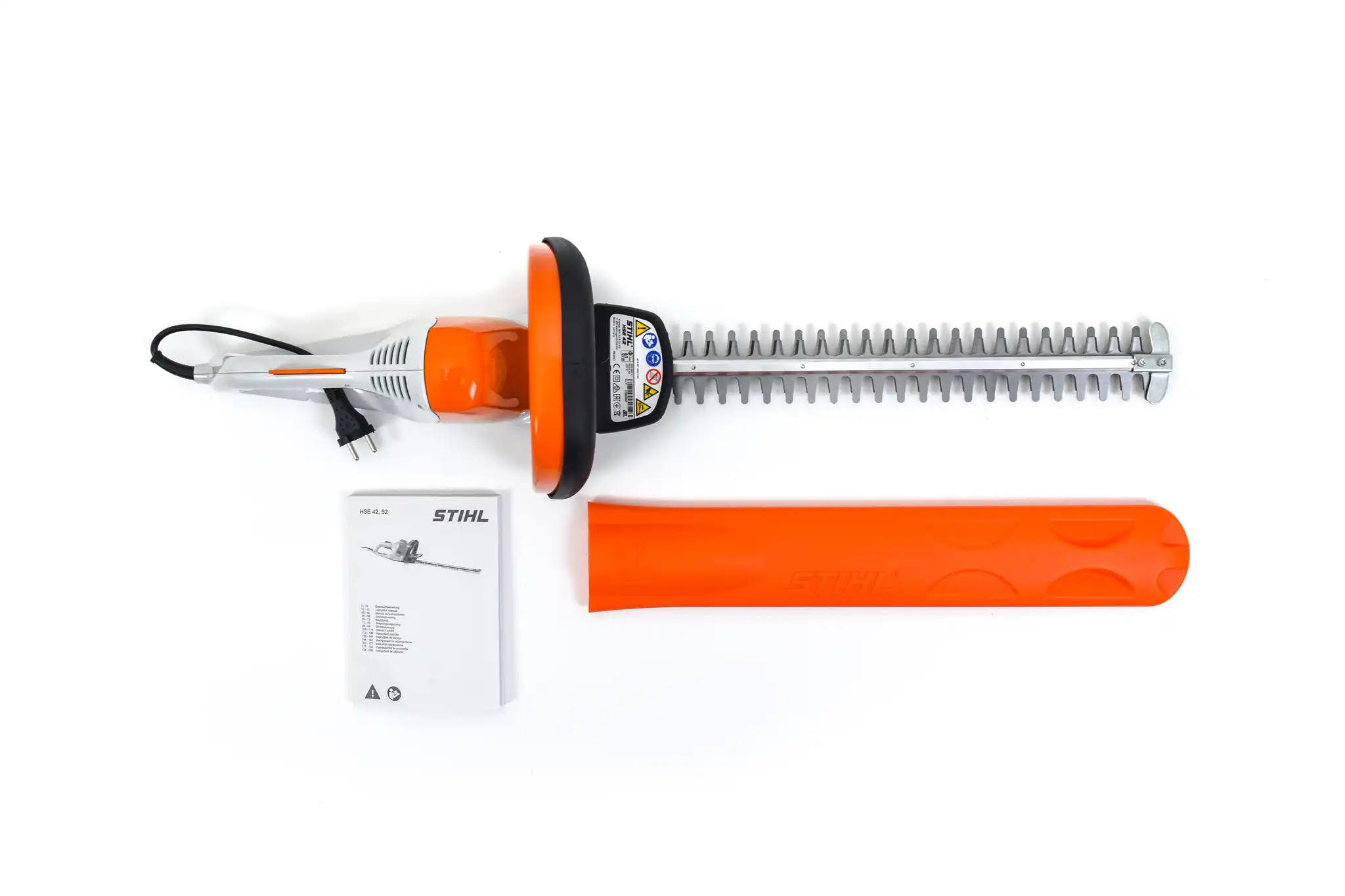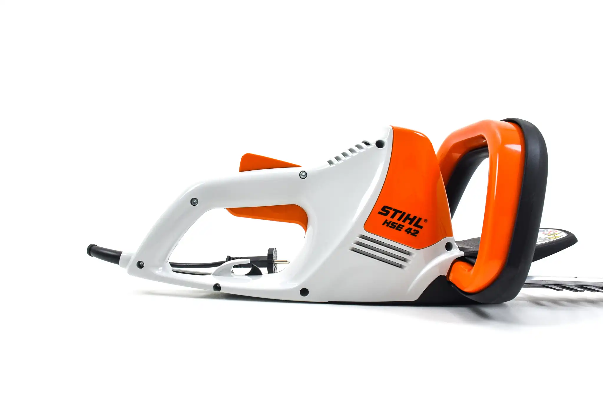STIHL HSE 42: Ελαφρύ και αθόρυβο ηλεκτρικό ψαλίδι μπουρτούρας με εργονομική λαβή και ασφαλές σύστημα δύο χειρών — τέλειο για άνετο, ακριβές κλάδεμα θάμνων στον κήπο σου