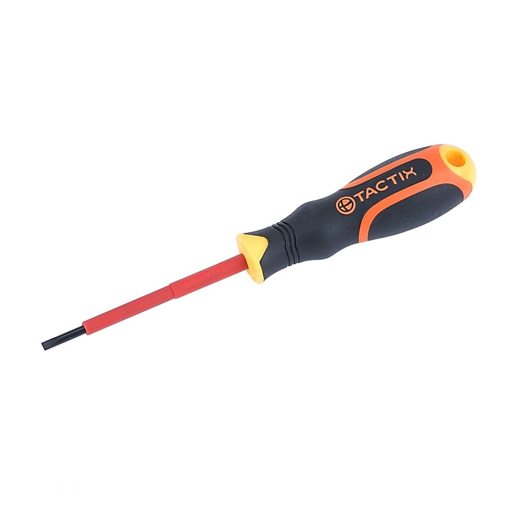 Κατσαβίδι ίσιο VDE Tactix 4.0x100mm με μόνωση έως 1000V, κατασκευή από ανθεκτικό χάλυβα CR-V και αντιολισθητική λαβή για ασφαλή χρήση σε ηλεκτρολογικές εργασίες.