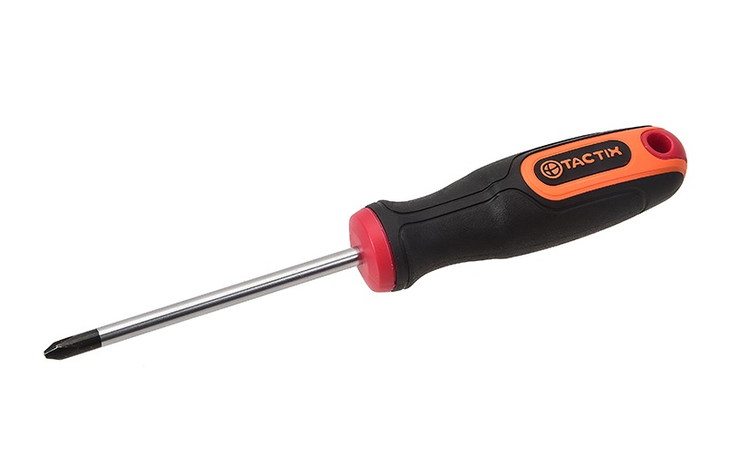 Κατσαβίδι σταυρού Tactix PH1×75 mm με μύτη Phillips, λεπίδα από χάλυβα CR‑V και αντιολισθητική εργονομική λαβή για άνετη και σταθερή χρήση σε οικιακές ή επαγγελματικές εργασίες.