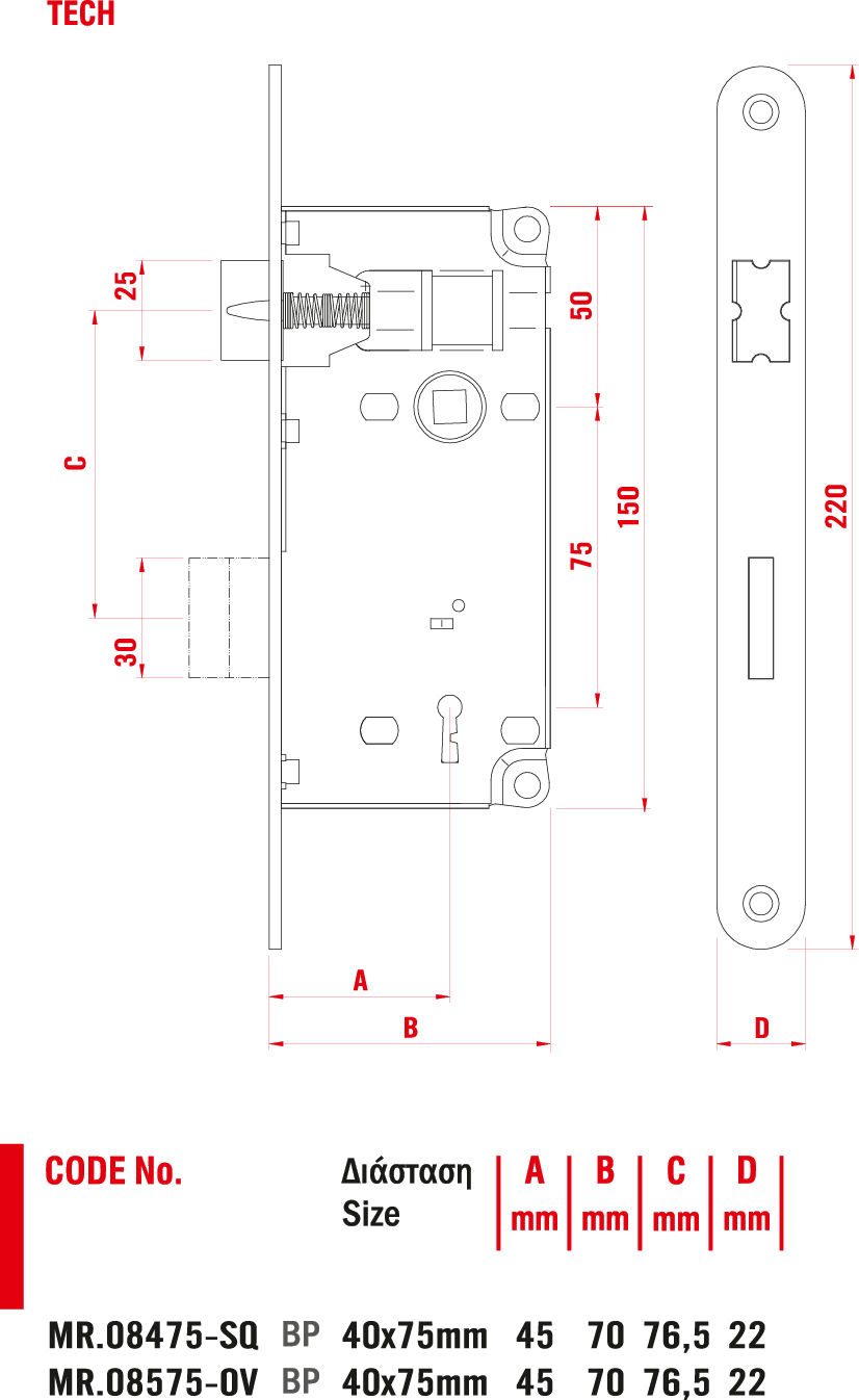 • Τύπος: Κλειδαριά μεσόπορτας ιταλικού τύπου