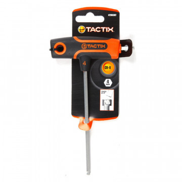 Το κλειδί allen ταφ μπίλιας Tactix μεγέθους 4 mm προσφέρει άνετο και σταθερό κράτημα χάρη στην αντιολισθητική λαβή του, ενώ η μπίλια επιτρέπει εύκολη πρόσβαση σε βίδες υπό γωνία. Κατασκευασμένο από ατσάλι CR-V για μέγιστη αντοχή και μεγάλη διάρκεια ζωής.
