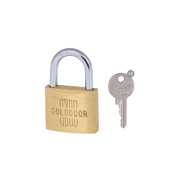 Λουκέτο ορειχάλκινο Goldoor Νο 20 με κρίκο ανθεκτικό στη σκουριά, ιδανικό για μικρές πόρτες, ντουλάπια, συρτάρια και αποθηκευτικούς χώρους. Συνοδεύεται από 3 κλειδιά και προσφέρει αξιόπιστη καθημερινή προστασία με την ποιότητα Goldoor.