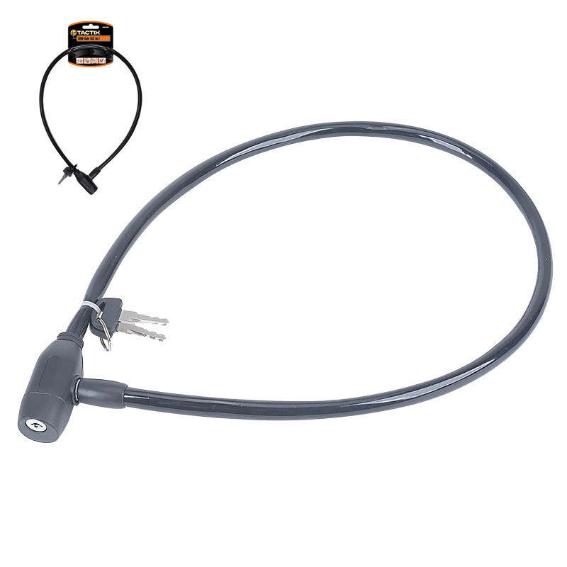 Ατσάλινο λουκέτο ποδηλάτου Tactix με ανθεκτικό σύρμα πάχους 6mm και μήκους 800mm. Διαθέτει κλείδωμα με κλειδί για αυξημένη ασφάλεια, προσφέροντας στιβαρή αλλά ευέλικτη λύση για καθημερινή χρήση και προστασία του ποδηλάτου σου.
