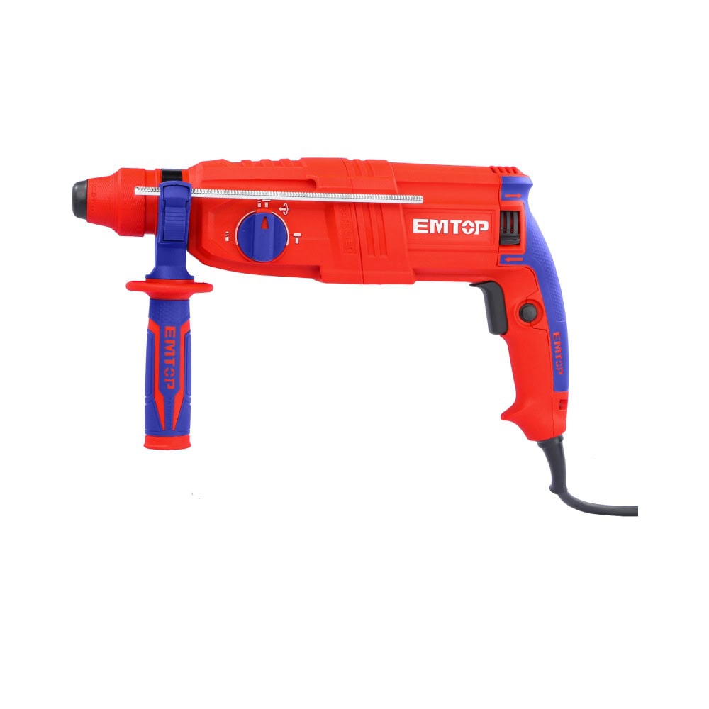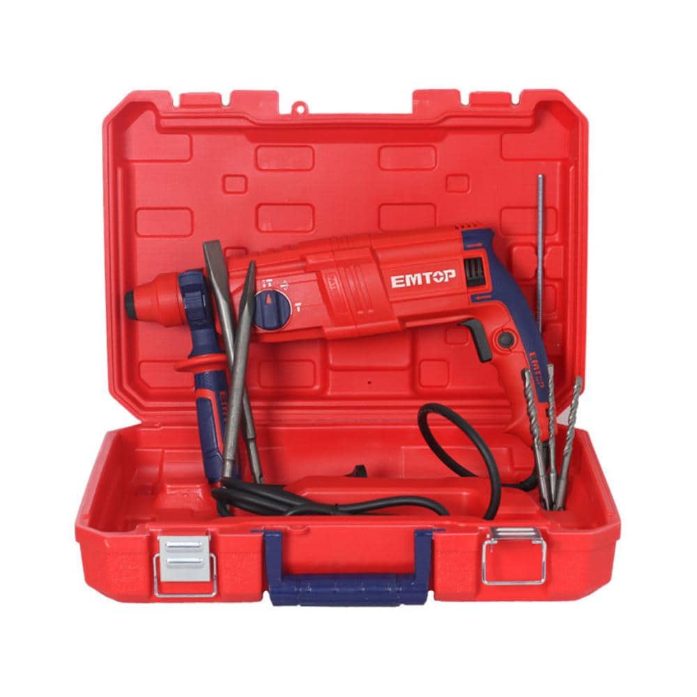 Περιστροφικό πιστολέτο ηλεκτρικό 800W Emtop με ενέργεια κρούσης 2,5J, SDS-Plus, ιδανικό για διάτρηση σε σκυρόδεμα και δομικά υλικά με εργονομικό σχεδιασμό και προστασία εμπλοκής.