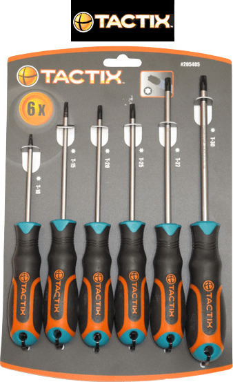 Σετ κατσαβίδια TACTIX TORX 6 τεμαχίων με εργονομικές αντιολισθητικές λαβές και άκρες υψηλής ακρίβειας. Ιδανικό για εργασίες ακριβείας σε ηλεκτρονικά και μηχανικά εξαρτήματα.