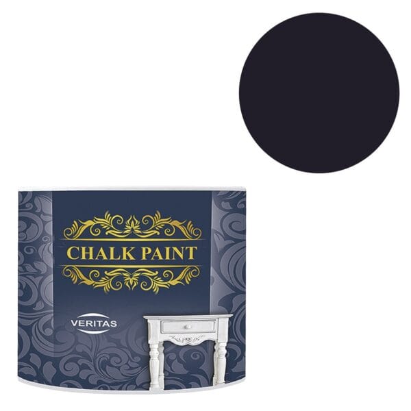 Χρώμα κιμωλίας νερού Veritas BLACK PLUMB με βελούδινη matte υφή για αυθεντικό vintage αποτέλεσμα σε έπιπλα και επιφάνειες. Άοσμο και εύχρηστο, στεγνώνει γρήγορα και εφαρμόζεται χωρίς αστάρι σε ξύλο, μέταλλο, γυαλί και τοίχους. Ποσότητα 0,375lt.