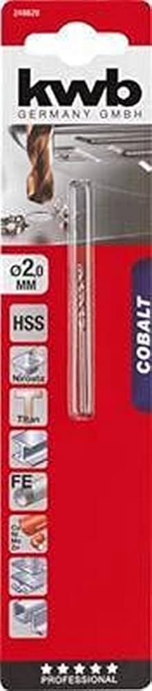 Τρυπάνι κοβαλτίου KWB HSS 2,0 mm για διάτρηση σκληρών μετάλλων και ανοξείδωτου χάλυβα. Προσφέρει υψηλή αντοχή στη θερμότητα και καθαρές, ακριβείς διατρήσεις σε απαιτητικές εφαρμογές.