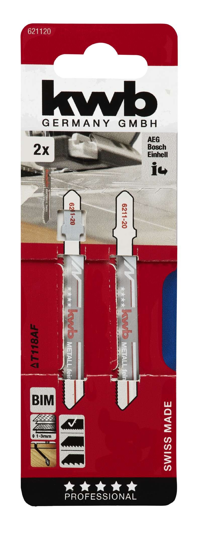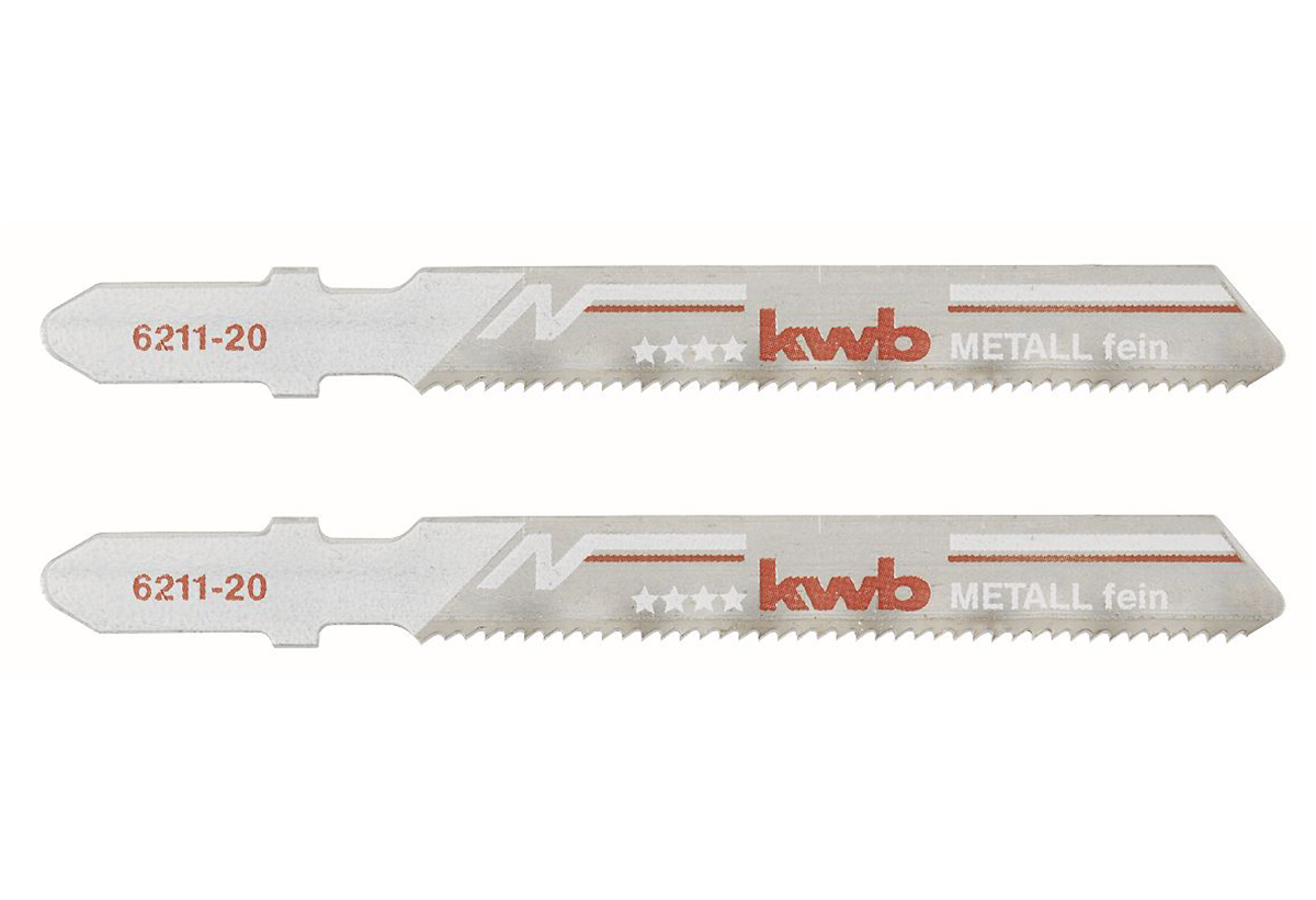 Σετ 2 πριονόλαμες σέγας KWB με ψιλό δόντι για μέταλλα, ιδανικές για καθαρές κοπές σε λεπτά μεταλλικά φύλλα, σωλήνες και προφίλ. Κατάλληλες για παλμικές σέγες, προσφέρουν ακρίβεια και επαγγελματικό φινίρισμα.