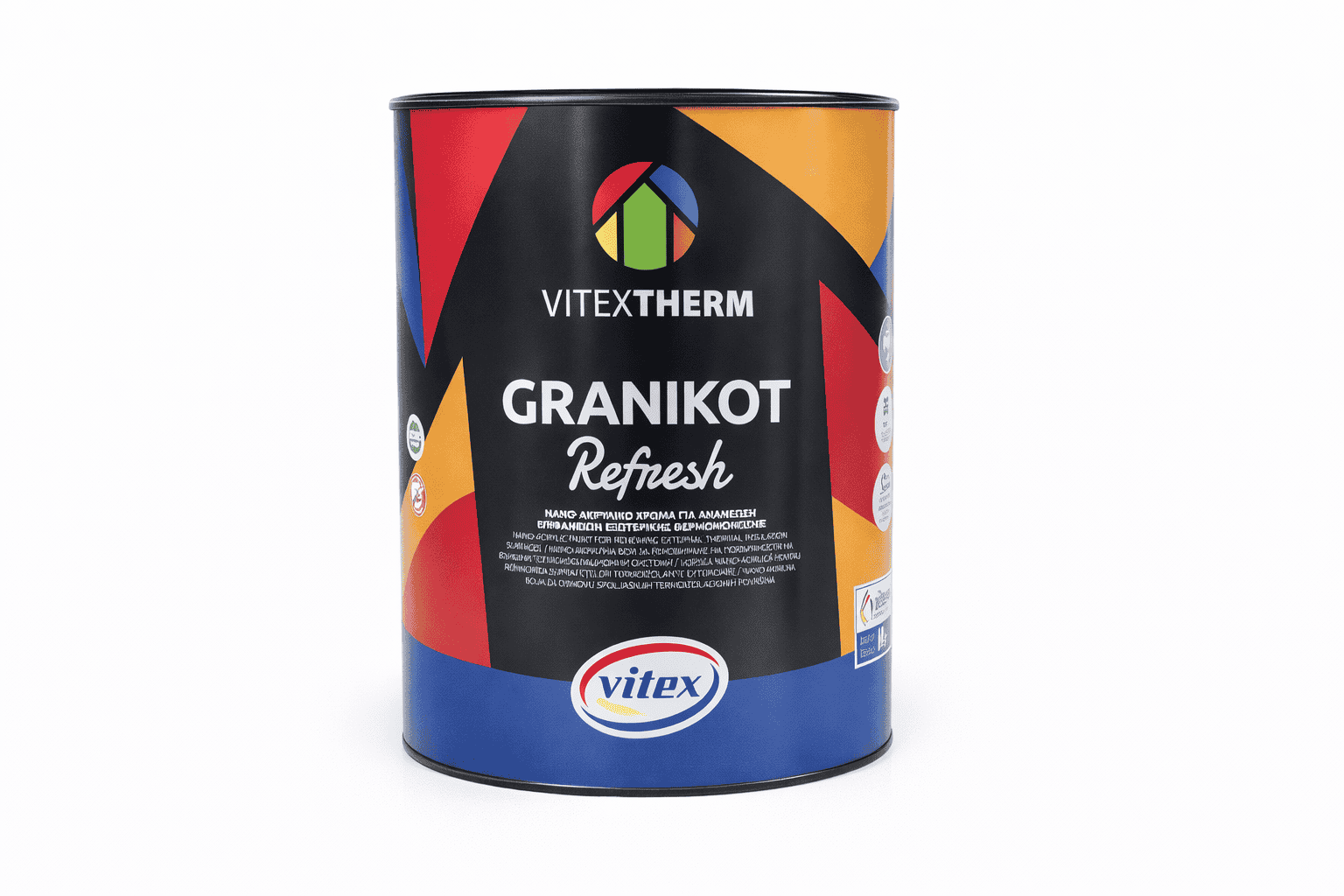 Ακρυλικό μονωτικό Vitex Granikot Refresh βάσης Medium για εσωτερικούς και εξωτερικούς τοίχους, ιδανικό για ανανέωση παλαιών επιφανειών, προσφέρει αντοχή, κάλυψη και εξαιρετικό φινίρισμα.