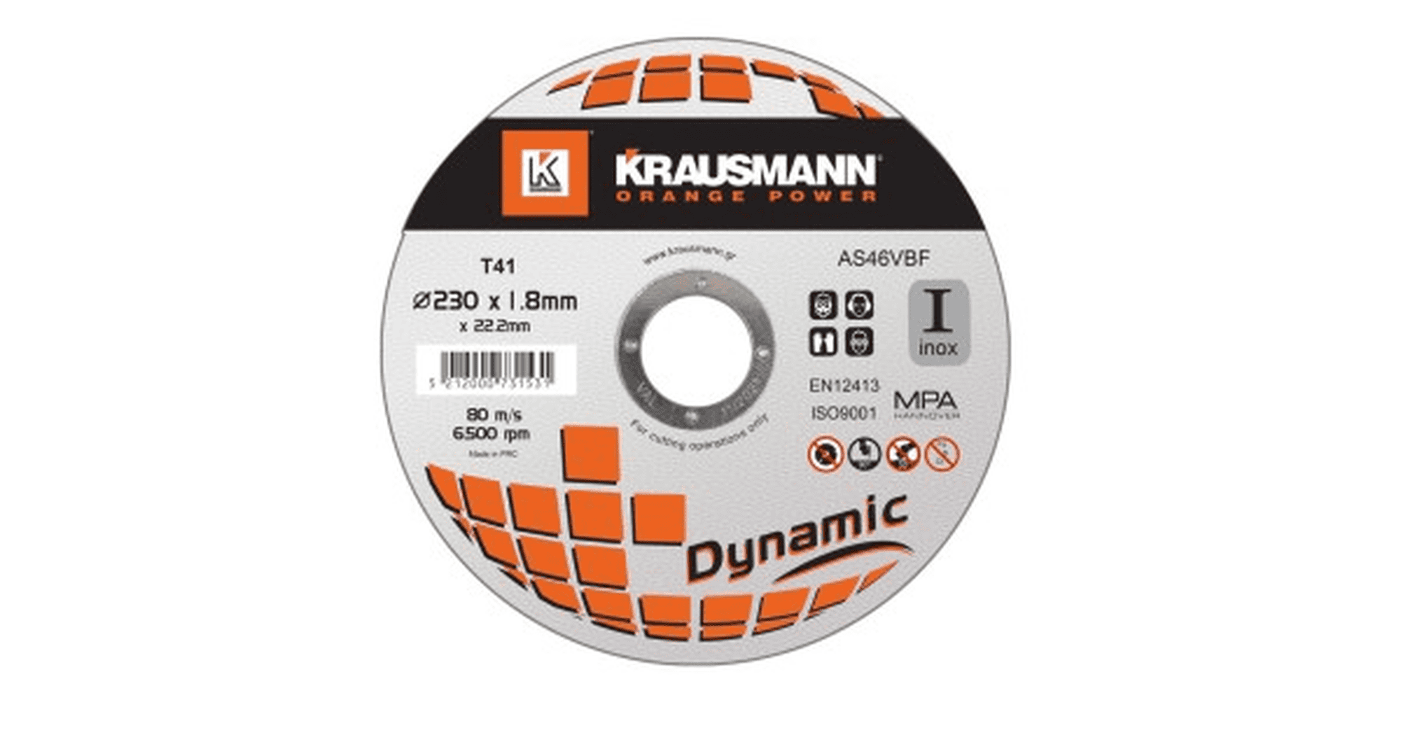 Δίσκος κοπής inox Krausmann Dynamic 230×1,8×22,2 mm για καθαρές και γρήγορες κοπές ανοξείδωτου, προσφέρει μεγάλη αντοχή και διάρκεια σε επαγγελματικές εφαρμογές.