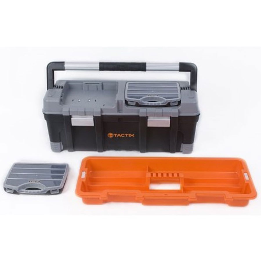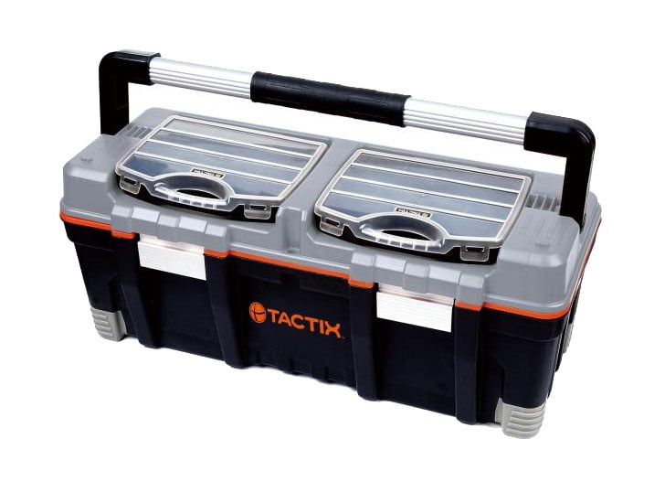 Οι εργαλειοθήκες Tactix 26 προσφέρουν άφθονο χώρο με ενσωματωμένο ράφι και δύο ταμπακιέρες με κλίπς αλουμινίου για ασφαλή και οργανωμένη αποθήκευση εργαλείων.