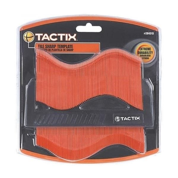 Φόρμα περιγράμματος Tactix 28×12 cm – πλαστική με 1,5 mm λαμάκια & ειδικό χτένι για αντιγραφή εσωτερικών κι εξωτερικών σχημάτων. Ιδανική για κοπή πλακιδίων γύρω από σωλήνες, τύπους & γωνίες.