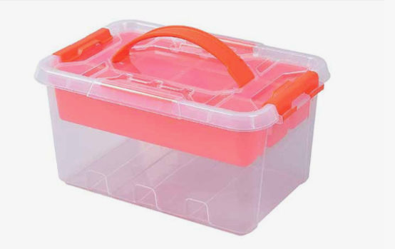 Διάφανο πλαστικό κουτί αποθήκευσης 15 lt (40,4×30,4×18,7 cm) με ράφι, καπάκι και κλιπς, πλαϊνές λαβές – ανθεκτικό πολυπροπυλένιο, ιδανικό για εύρυθμη οργάνωση εργαλείων και αντικειμένων.