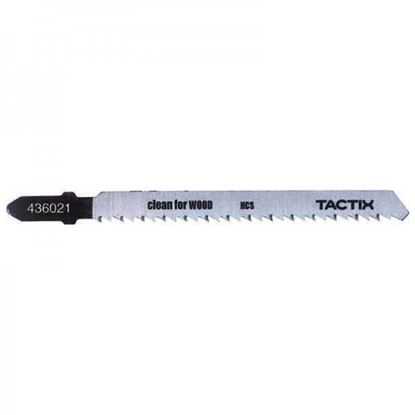 Λάμες σέγας ξύλου Tactix 100mm ψιλής διατομής με ανάποδο δόντι, ιδανικές για καθαρές κοπές χωρίς ξέφτισμα στην επάνω επιφάνεια, κατάλληλες για λεπτά ξύλα και επενδύσεις.