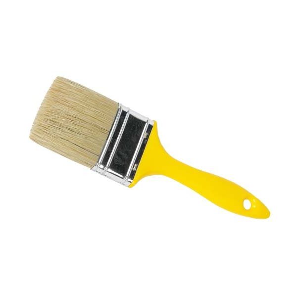 Πινέλο Happy ημίδιπλο 50mm με λευκή τρίχα, ιδανικό για ακρυλικά,πλαστικά χρώματα και λαδομπογιές, προσφέρει ομοιόμορφη εφαρμογή και καθαρό αποτέλεσμα σε μεσαίες επιφάνειες.
