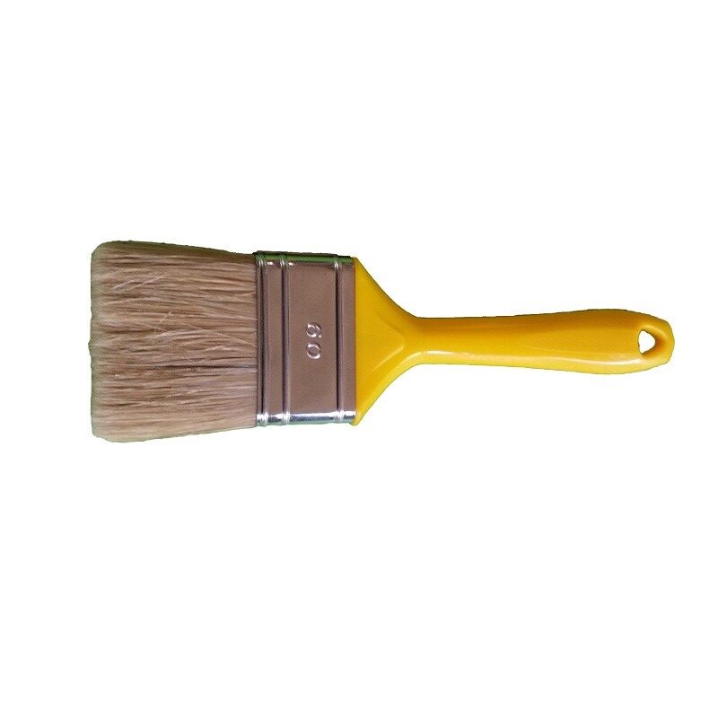Πινέλο Happy ημίδιπλο 60mm με λευκή τρίχα, ιδανικό για ακρυλικά και λαδοχρώματα, προσφέρει ομοιόμορφη κάλυψη και καθαρό φινίρισμα σε μεσαίες και μεγάλες επιφάνειες.