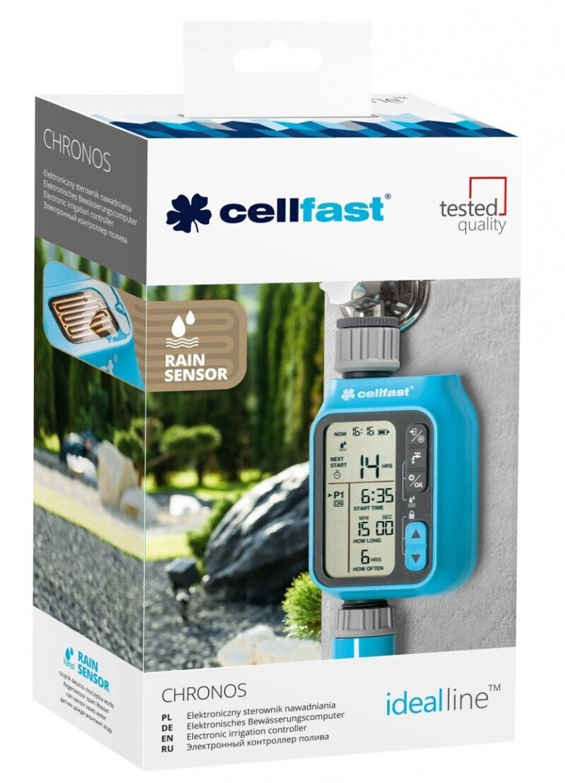 Ο ψηφιακός προγραμματιστής ποτίσματος CHRONOS IDEAL CELLFAST διαθέτει έως 3 διαφορετικά προγράμματα, αισθητήρα βροχής και μεγάλη οθόνη LCD για εύκολη ρύθμιση και απόλυτο έλεγχο. Εξασφαλίζει οικονομία νερού και ιδανική φροντίδα για κάθε κήπο, με αξιοπιστία και ποιότητα CELLFAST.